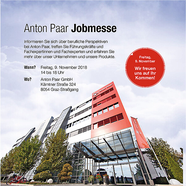 Anton Paar Job Fair: November 9, 2018 / 2 to 6 pm / Kärntnerstraße 324 / 8054 Graz-Straßgang / Austria