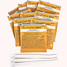 Cleaning kit with 10 sachets of TM Desana MAX CL10 (10 g each), including safety data sheet and 3 measuring spoons.