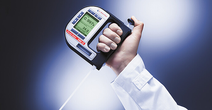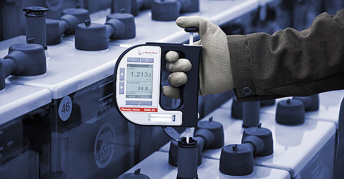 DMA 35 Basic è il densimetro palmare entry-level che preleva i campioni direttamente dalla botte di stoccaggio per mezzo di una pompa integrata ed esegue le misure sul luogo. I risultati sono forniti sotto forma di densità o concentrazione, ad esempio in °Brix, % v/v di alcol o % p/p di H2SO4. Essendo leggero e compatto, il densimetro consente di eseguire la misurazione di campioni difficili da raggiungere, ad es. batterie per autoveicoli stoccate nei scaffali stretti o campioni di vino da prelevare da botti impilate una sull'altra.