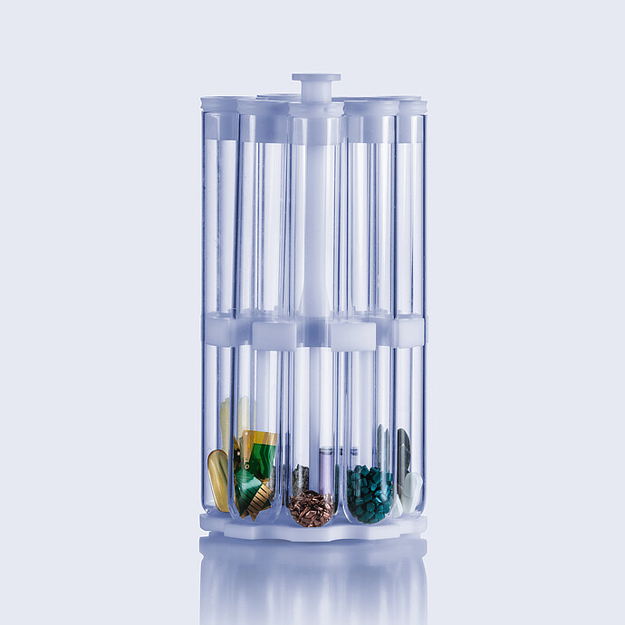 I sistemi di digestione a microonde Multiwave 7101/7301/7501 sono in grado di alloggiare diversi rack PTFE-TFM, garantendo di poter eseguire la digestione a microonde di un massimo di 41 campioni in un unico ciclo. Digestione di un massimo di 4 g di campione in una sola posizione. Disponibilità di un'ampia scelta di fiale: per le operazioni di routine, utilizzare fiale di quarzo a parete sottile con bassi valori di bianco o fiale di borosilicato monouso. Le fiale PTFE-TFM sono destinate alle applicazioni con acido fluoridrico. Recipienti di quarzo sigillati dedicati alla manipolazione di analiti molto volatili.