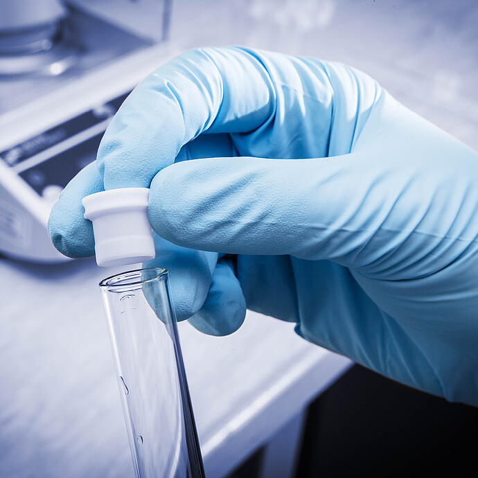 Decomposition vessel made of quartz glass with a total volume of 15 mL. Graduated (2 / 5 / 10 ml); diameter of vessel neck: 16 mm. Closing technique: wrapping with PTFE film. Fits with quartz lid 16 mm (70866).