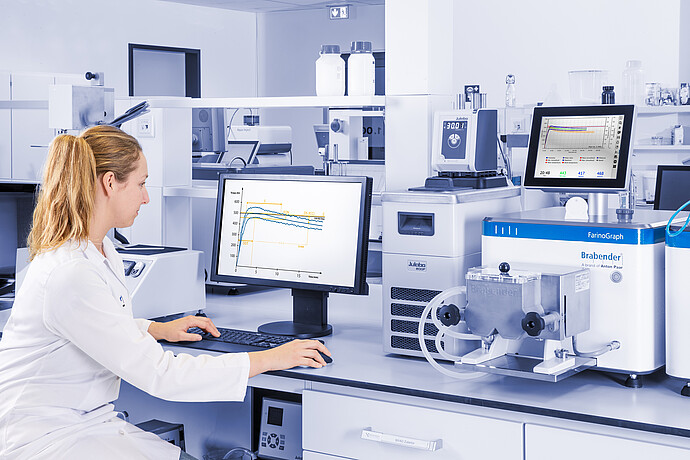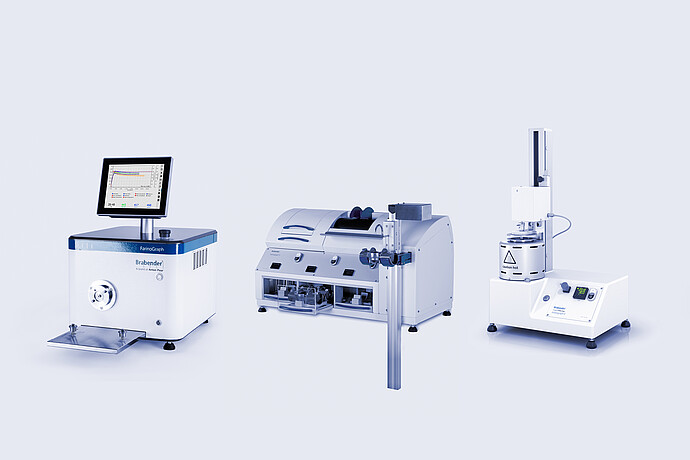 El conocido sistema Brabender de 3 fases es un sistema multidispositivo que simula todo el proceso de horneado. El FarinoGraph ofrece información sobre la absorción de agua y el comportamiento de amasado. El ExtensoGraph examina las propiedades de estirado y procesado, garantizando que su masa cumple las normas más exigentes. Y el Amylograph-E es la elección obvia para el análisis de la gelatinización y la actividad enzimática.