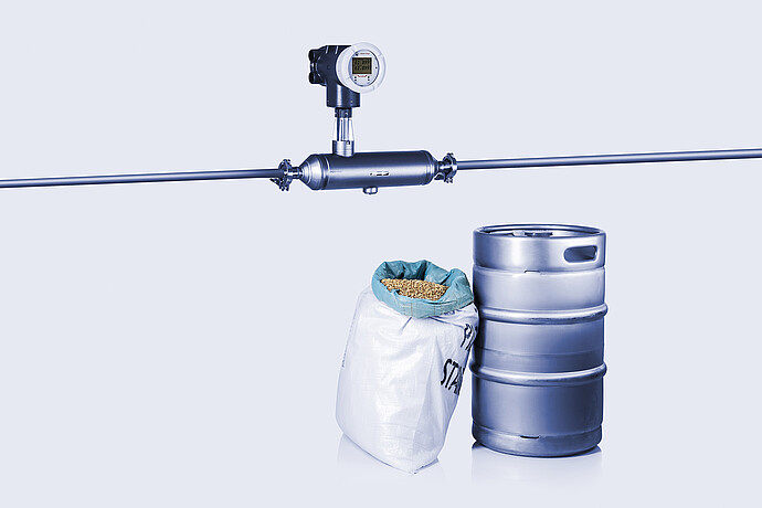 The Type S L-Cor 6000 Coriolis mass flow meter, whose wetted parts of made of chemically resistant titanium, is shown from the front