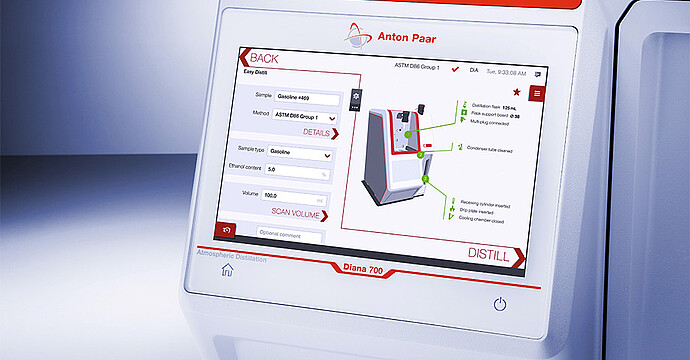 La serie de analizadores de destilación Diana de Anton Paar (Diana 700 y Diana 300) realiza automáticamente un análisis de alta precisión del rango de destilación a presión atmosférica.