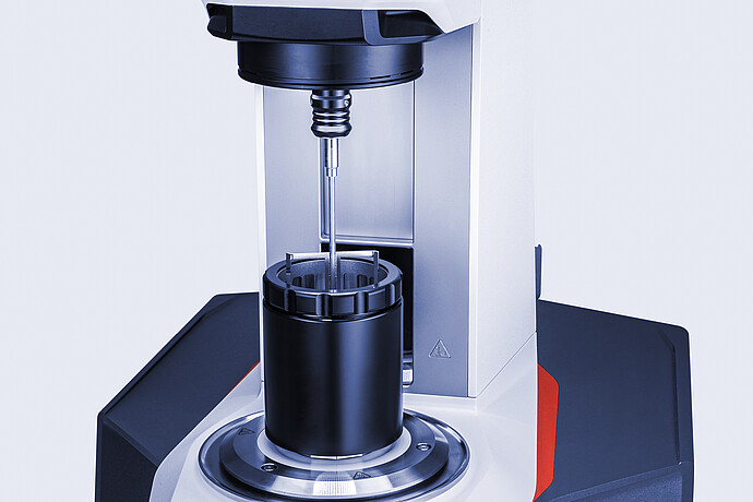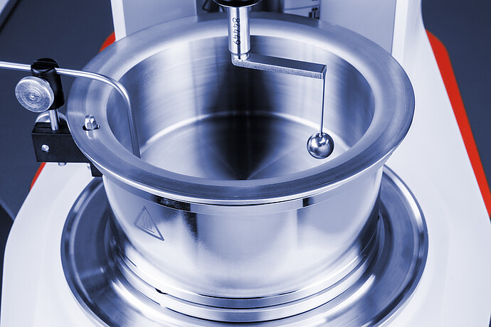 The ball measuring system (BMS) is designed to measure the flow properties of samples with large particles, such as many food samples (the typical particle size of such samples ranges between 1 mm and 10 mm). The measuring principle, developed by Müller-Thyrach*, is based on an eccentrically rotating ball (sphere) in a cup which avoids disturbing edges and undesired slipping or gliding. The ball is available in various diameters, enabling measurement of a large range of sample viscosities. Accurate temperature control of the sample is possible in a range between -10 °C to +70 °C. Due to outstanding motor control, a full flow and viscosity curve can be recorded in a single revolution of the measuring system. Integrated analysis of the flow field that is produced allows the online calculation of rheological parameters such as viscosity and shear rate.