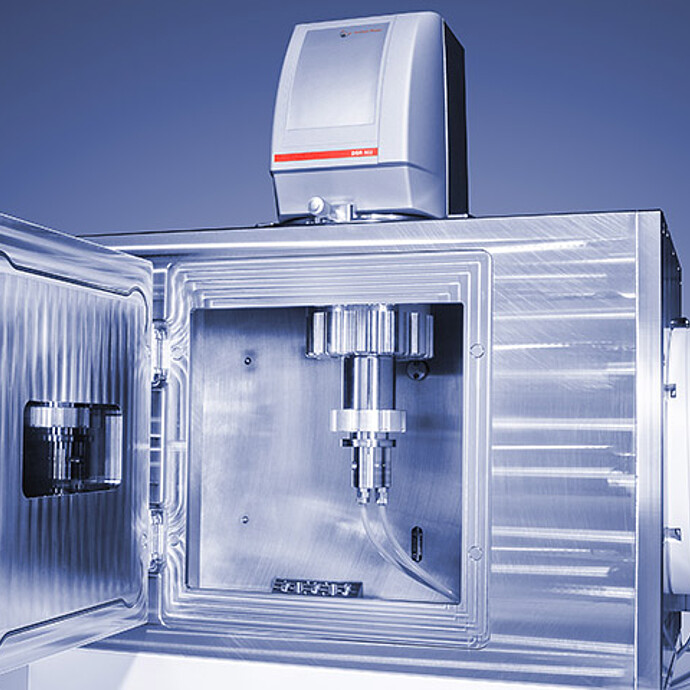 The air-bearing-supported synchronous EC-motor is the key component of the DSR 502 head. Whether you perform zero-shear viscosity determinations on low-viscosity polymer solutions or measure highly viscous magnetorheological fluids at high shear rates and strains, the EC motor ensures accuracy across a vast viscosity range. Furthermore, the integrated normal force sensor enables highly precise measurements of the normal force that is applied to the measuring system and thereby gives additional information about the sample’s behavior under certain test conditions.
