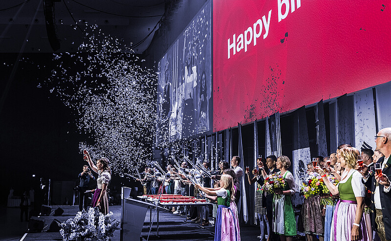 Such a unique story needs to be celebrated. And so the company invited the entire workforce worldwide as well as representatives from politics, business partners and friends of the family to the celebration at Stadthalle Graz. Around 2,700 employees from Asia, America, Australia, Africa and Europe came to Graz for the big celebration. Many visited Styria for the first time. "I would like to thank everyone for coming. I am particularly pleased that so many employees from all over the world came to celebrate with us. That makes me proud and grateful," said CEO Dr. Friedrich Santner.
