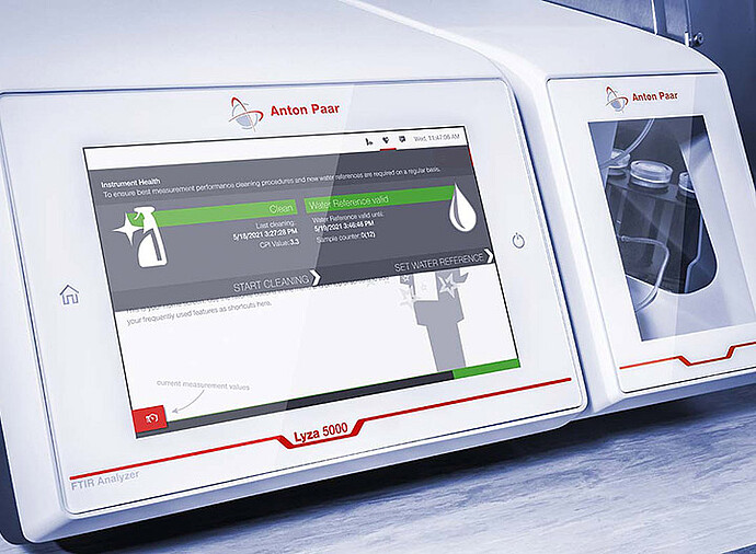 • Los flujos de trabajo integrados le guían con mediciones de referencia de agua y etanol – sin necesidad de estándares propios de referencia.